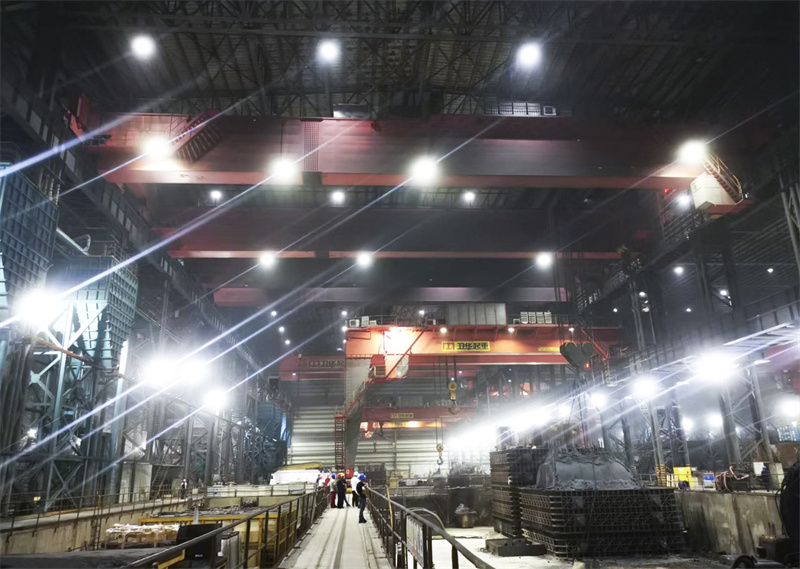 该项目中的JNTY江南350t铸造起重机整车采用四梁六轨双小车结构,主起升减速机与车架为一体化,整体退火和整体加工的制造工艺保证齿轮、轴承、电机、制动器等的安装精度,使起重机运行更加稳定。