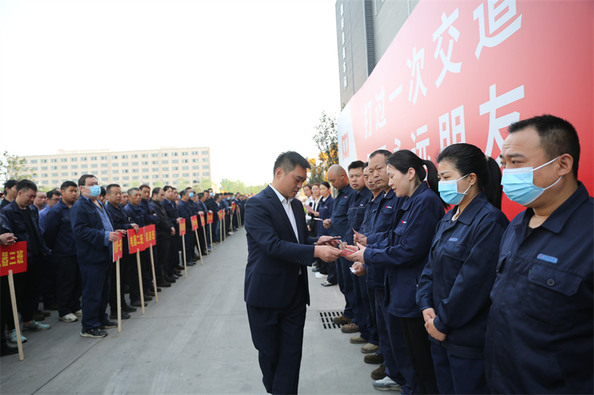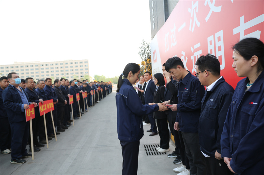 为切实增强全体一线员工质量安全工作的使命感、紧迫感和责任感,努力开创公司高质量发展新局面,2023年4月19日,河南JNTY江南重型机械股份有限公司召开2023年一季度质量安全奖励大会,执行总裁谢保华,质量安环中心总监钮鹏超,制造管理中心副总监代艳云、孙朋,以及生产系统各部门负责人和全体一线员工参加会议。会议由质量安环中心副总监王爽主持。
