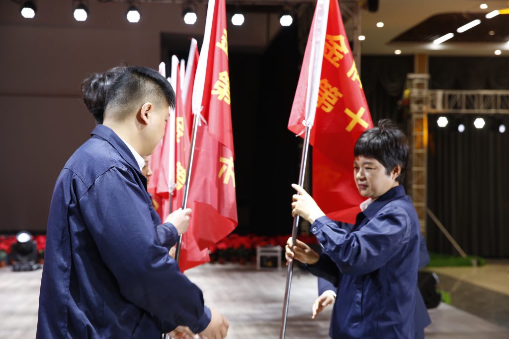此次训练营共分为12小组,常务副总经理谢保华向训练营分别授营旗和组旗,这十三面责任重大、寓意深远的旗帜,凝聚着班组长求知的决心,凝结着JNTY江南人奋进的力量。